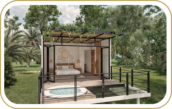 Nuestras habitaciones, diseñadas para brindarte confort y exclusividad, te esperan para ofrecerte una estancia inolvidable. Despierta cada mañana con el sonido de los pájaros y duerme bajo un cielo estrellado.